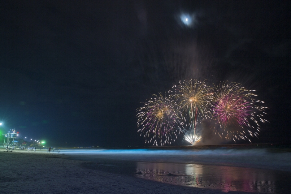 해변에서 열리는 EDM(Electronic Dance Music) 파티, DJ 공연, K-POP 콘서트, 불꽃놀이까지 이어지며 야간 해변 축제의 정점을 찍습니다.